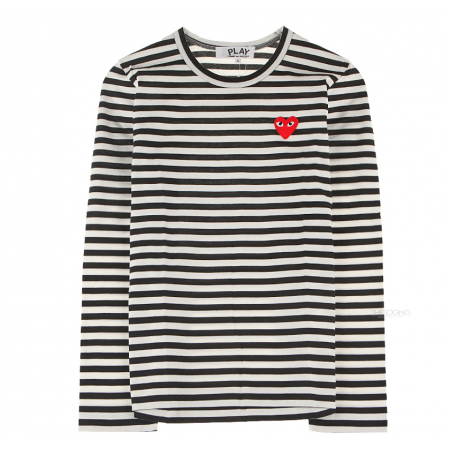[꼼데가르송] AZ-T163-051-1 검흰 스트라이프 레드와펜 블랙 여성 긴팔티셔츠 > 잡화